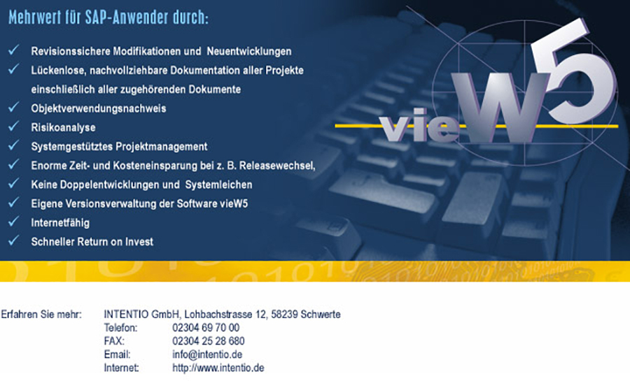 Die Zusammenarbeit mit INTENTIO war in jeder Phase angenehm. Die Einführung von vieW5® war ein voller Erfolg. Ich kann mir heute nicht mehr vorstellen, wie wir unser SAP-System ohne vieW5® überhaupt betreiben könnten.